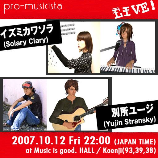 「イズミカワソラ」「DAUGHTER」「SPIRAL SPIDERS」として活動中のソラが、セカンドライフに参入。SLでのライブ模様、SLライフを紹介します♪